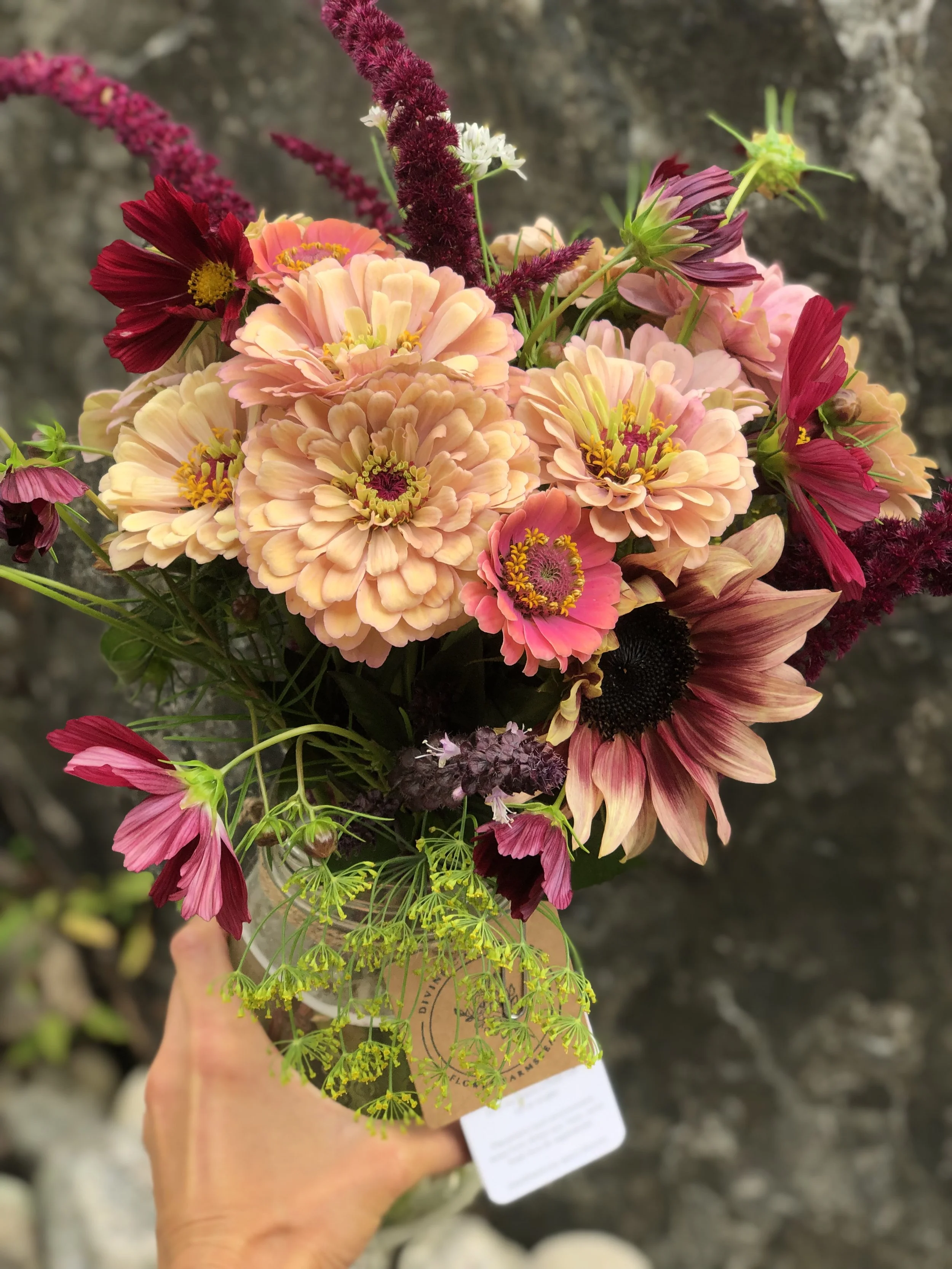 Our Farmer’s Pick Arrangement is available from mid-May to early October.