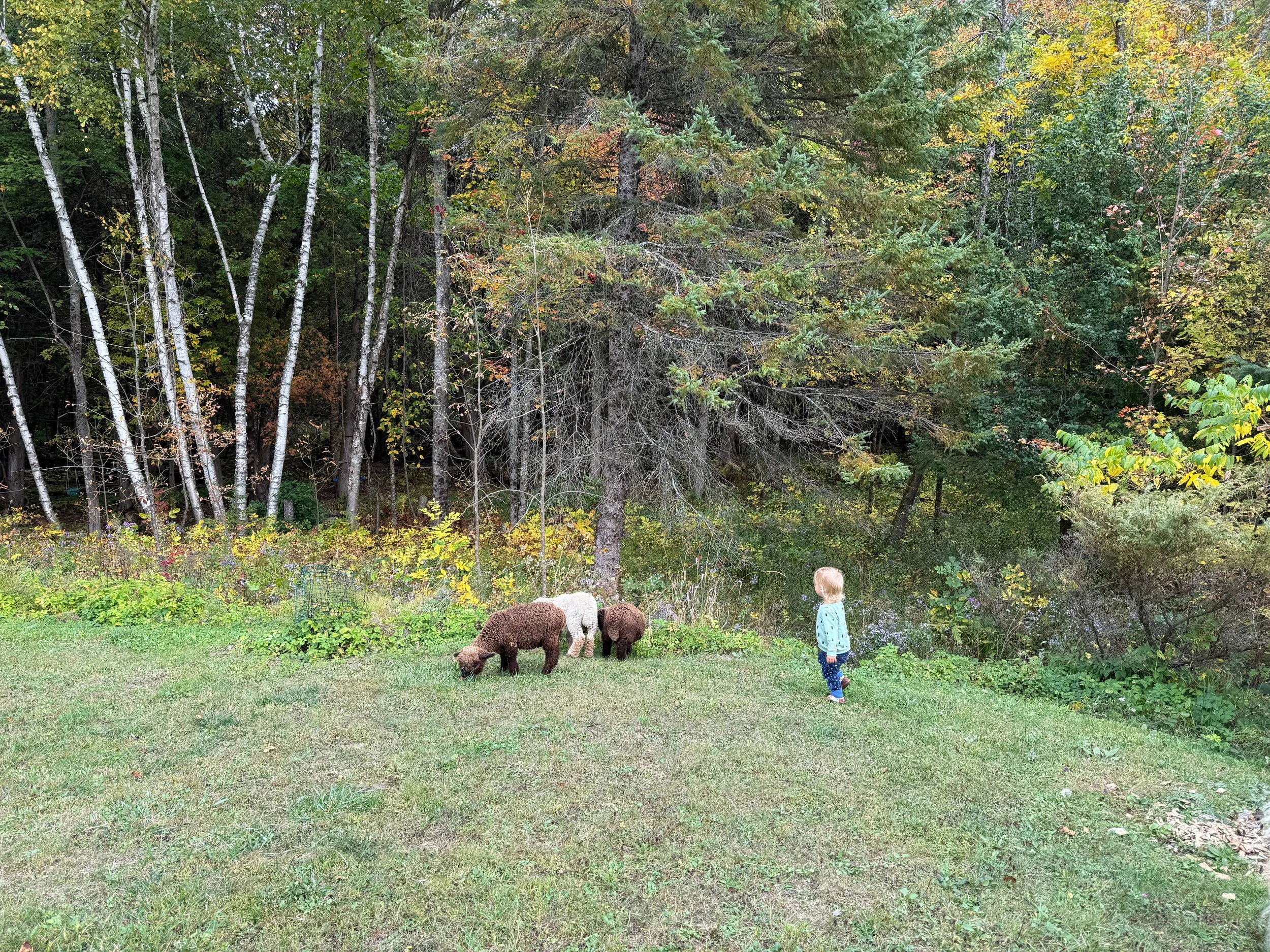 We focus on providing a healthy habitat for all life, including the microorganisms in the soil, bees, insects and native pollinators. Half of our land is woodlands, and we started to sustainably manage the forest area this past year in hopes of seeing an increase in native wildlife and pollinators. We have also planted over 50 varieties of flowers, 30 fruit trees, as well as many vegetables, herbs, medicinal herbs in our now transformed lawns to fields to increase the biodiversity present and sequester more carbon.