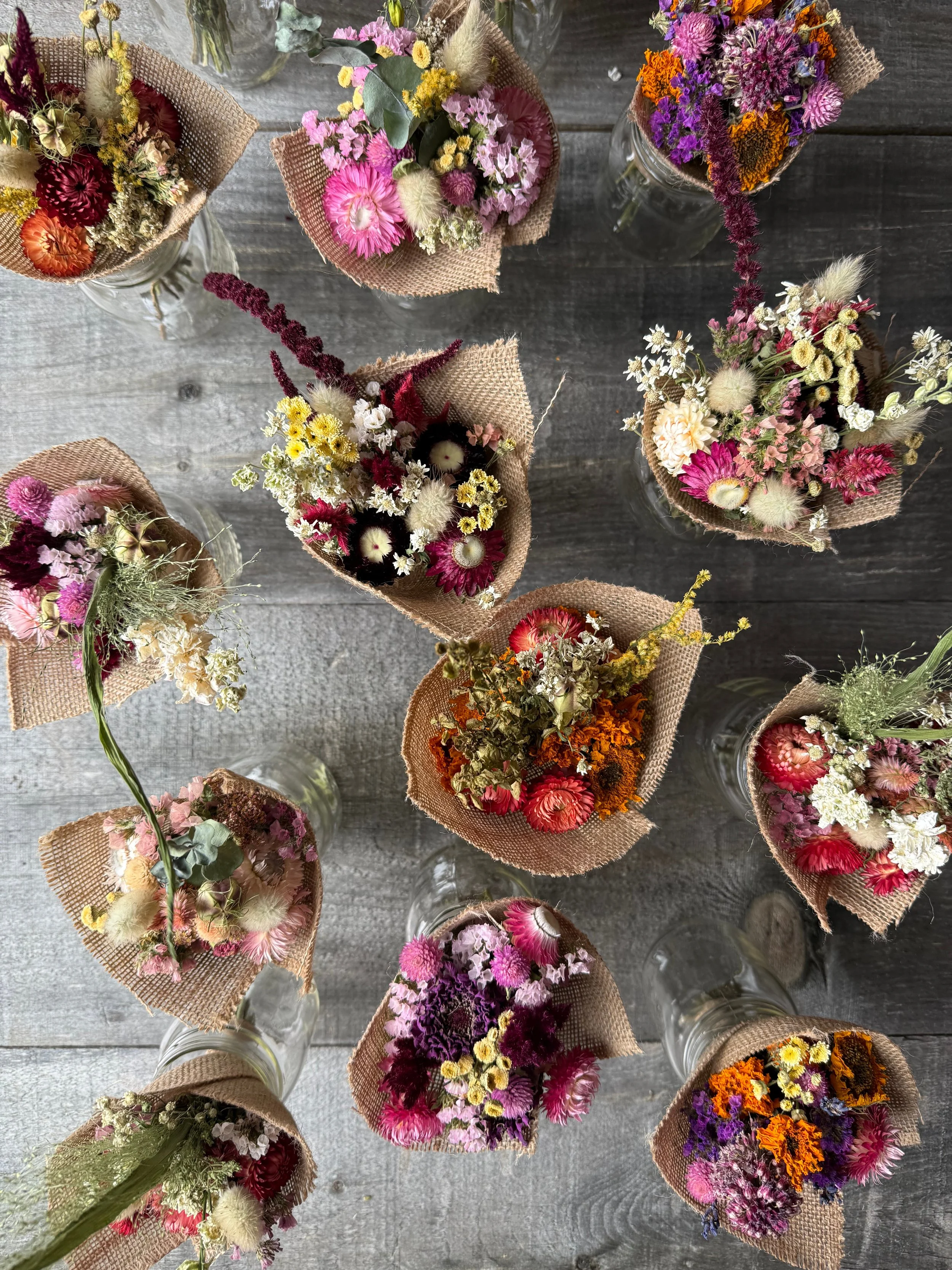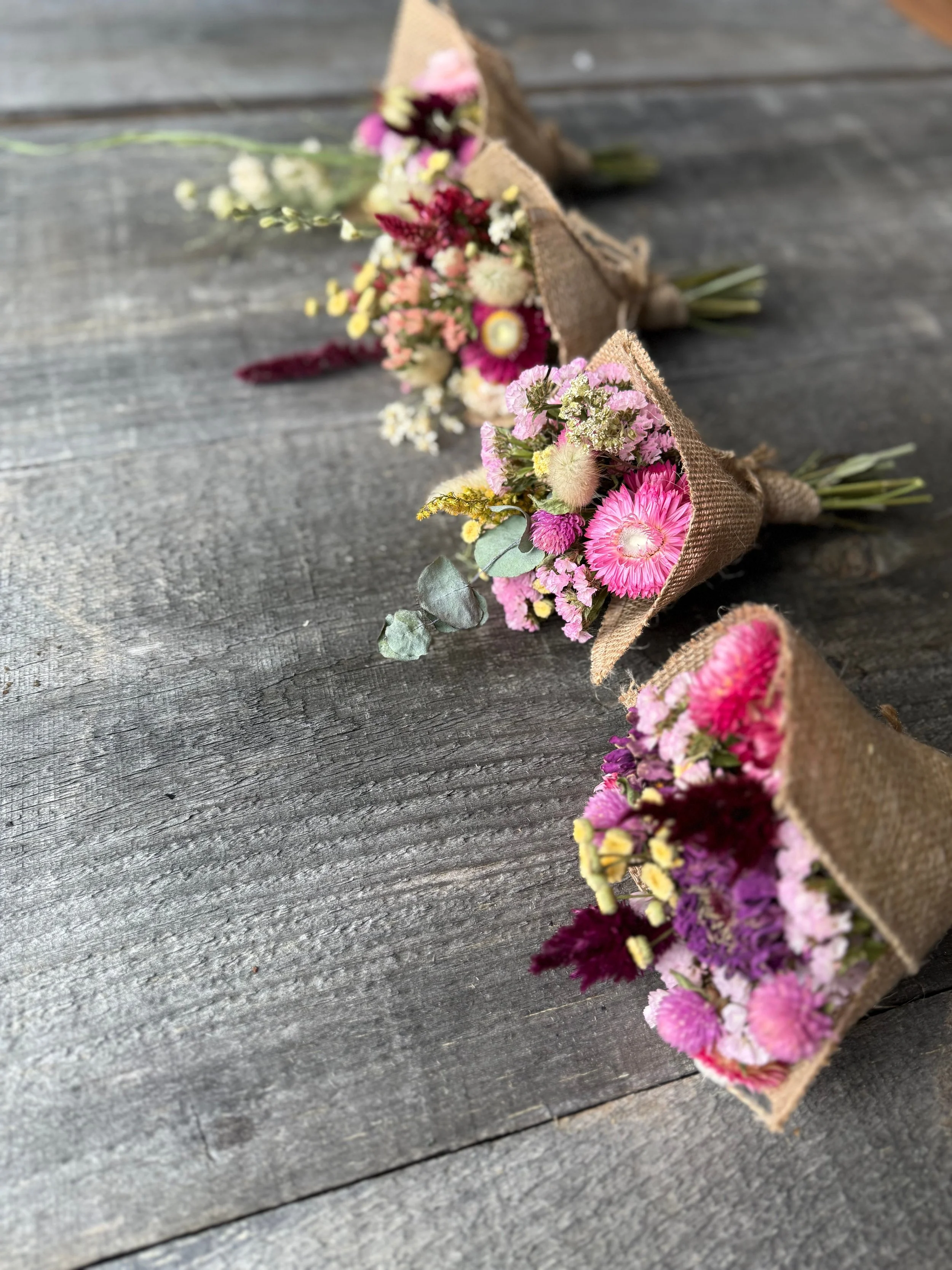 Our Mini Dried Floral Bouquets are available during the cooler and colder times of the year.