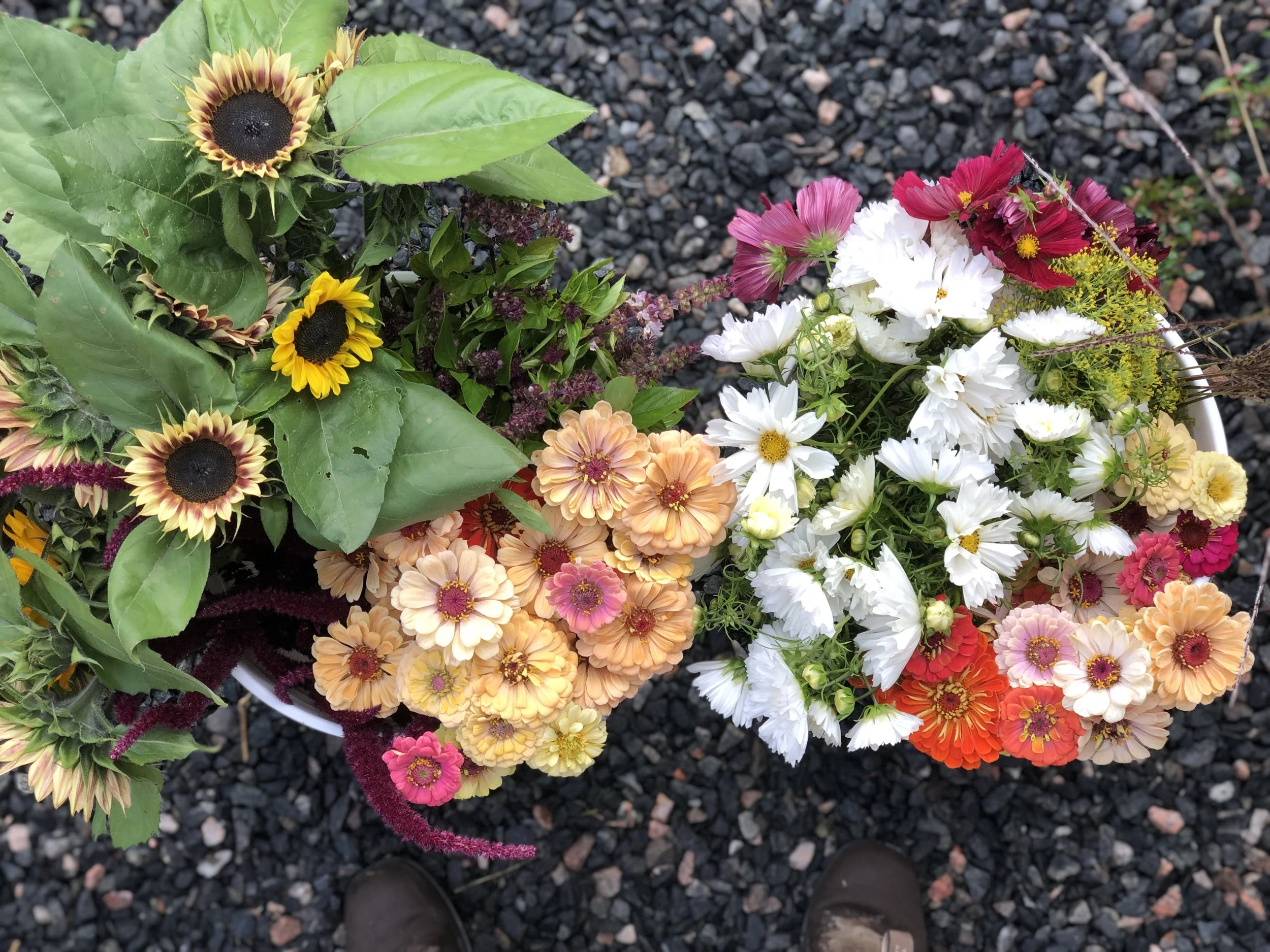 A bucket of blooms to take home & create your own arrangement. $120. Email to order.